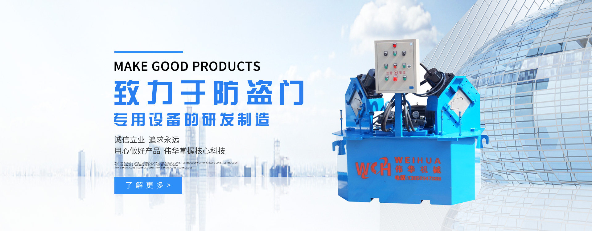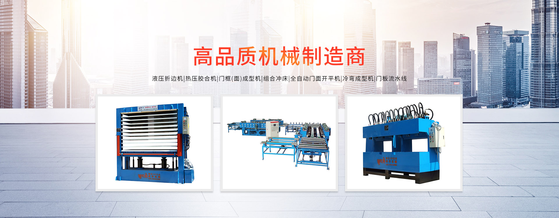 更多>溫州偉華機械制造有限公司地處浙江溫州瑞安市塘下工業(yè)區(qū),創(chuàng)建于2009年,數(shù)年來全心致力于防盜門專用設(shè)備的研發(fā)制造,主營產(chǎn)品有:門面成型機、門框成型機、熱壓膠合機、組合沖床、液壓折邊機、雙頭沖床、門面開平機。現(xiàn)已具備獨特的管理模式和產(chǎn)品開發(fā)能力,歷經(jīng)多年的努力,現(xiàn)已發(fā)展成為國內(nèi)最具影響力的機械設(shè)備企業(yè)之一。